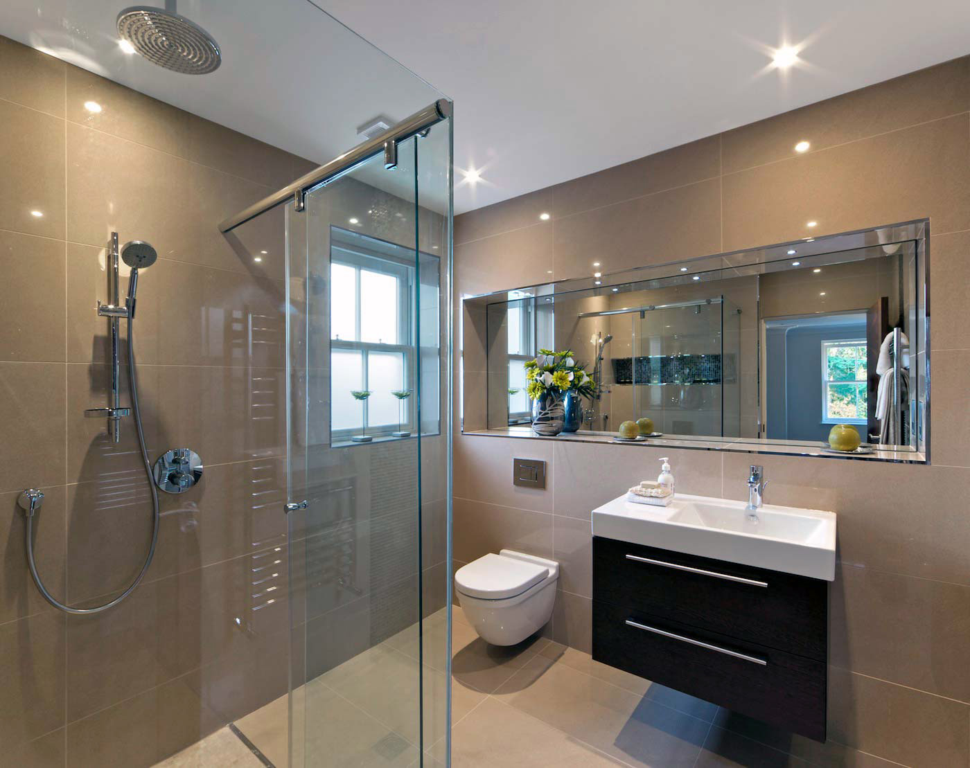 Verlaagd plafond badkamer is dé oplossing wanneer je inbouwspots en bijvoorbeeld speakers in het plafond wil inbouwen. Daarom kiezen veel mensen er ook voor bij een verbouwing of renovatie van de badkamer. Onder andere vaak samen met een ingebouwde badkamerventilator. Dankzij het vals plafond met inbouwspots of LED verlichting krijgt je badkamer een sfeervolle uitstraling. In dit inspiratieboek kan je dus ideeën opdoen bij het verbouwen van je badkamer.